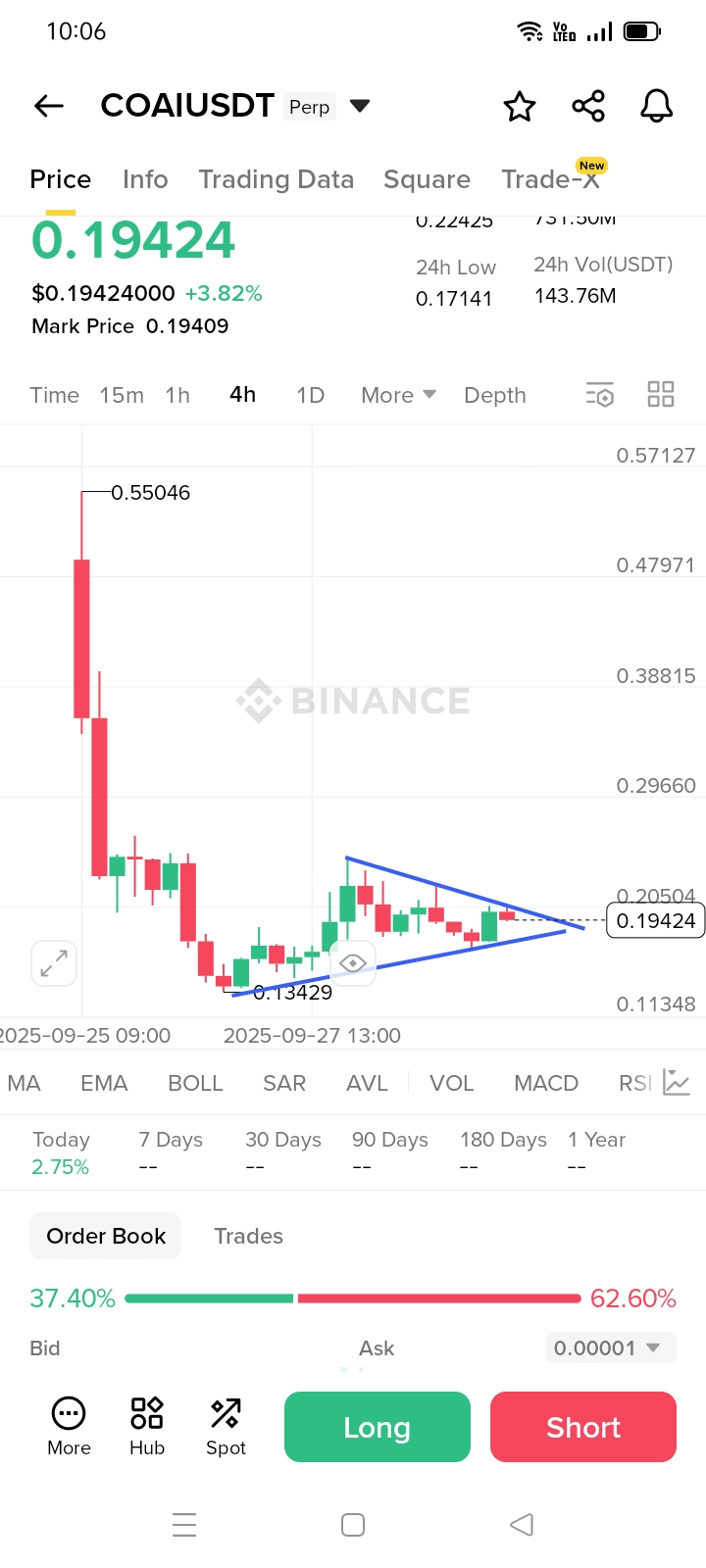 Sí, el triángulo parece equilibrado, pero la tendencia es ligeramente ascendente porque los mínimos siguen subiendo (0.134 → 0.17). lo que significa que los compradores están apoyando silenciosamente la base. Los osos no lo están presionando hacia abajo a pesar de ese gran desplome anterior.🍄