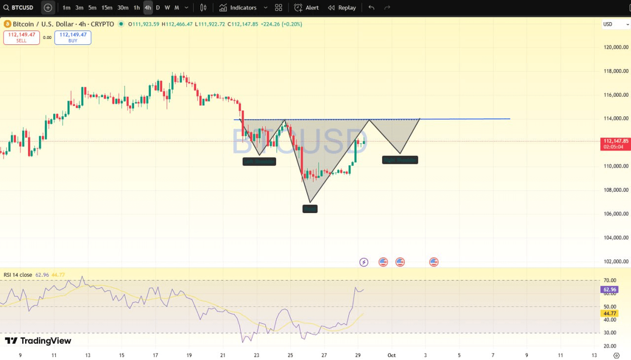 BTC siguiendo un patrón de gráfico alcista de cabeza y hombros invertidos 📊, ahora la cabeza y el hombro derecho se están cargando, espero un bombeo pronto.