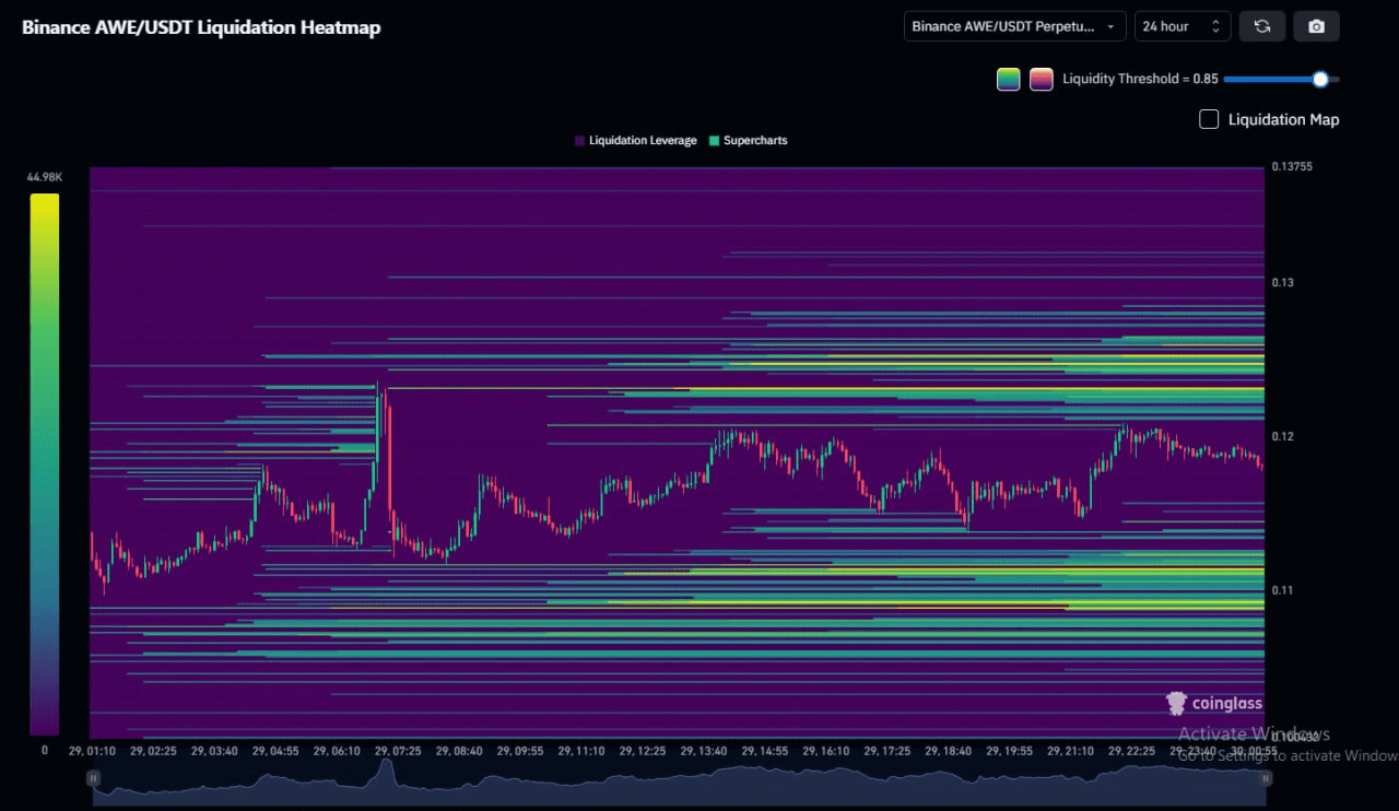 El mapa de calor de liquidación de 24h de CoinGlass muestra que la mayor parte de la liquidez está en la parte inferior, por lo que técnicamente el precio puede moverse más bajo.