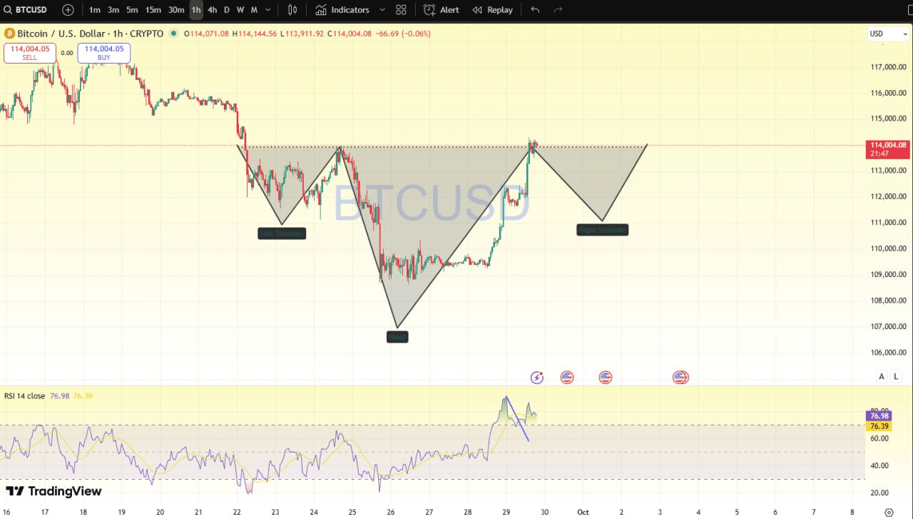 Bitcoin está siguiendo un patrón de gráfico alcista de cabeza y hombros invertidos, y el hombro derecho aún se está formando. Durante esta fase, la moneda puede moverse hacia abajo junto con BTC.