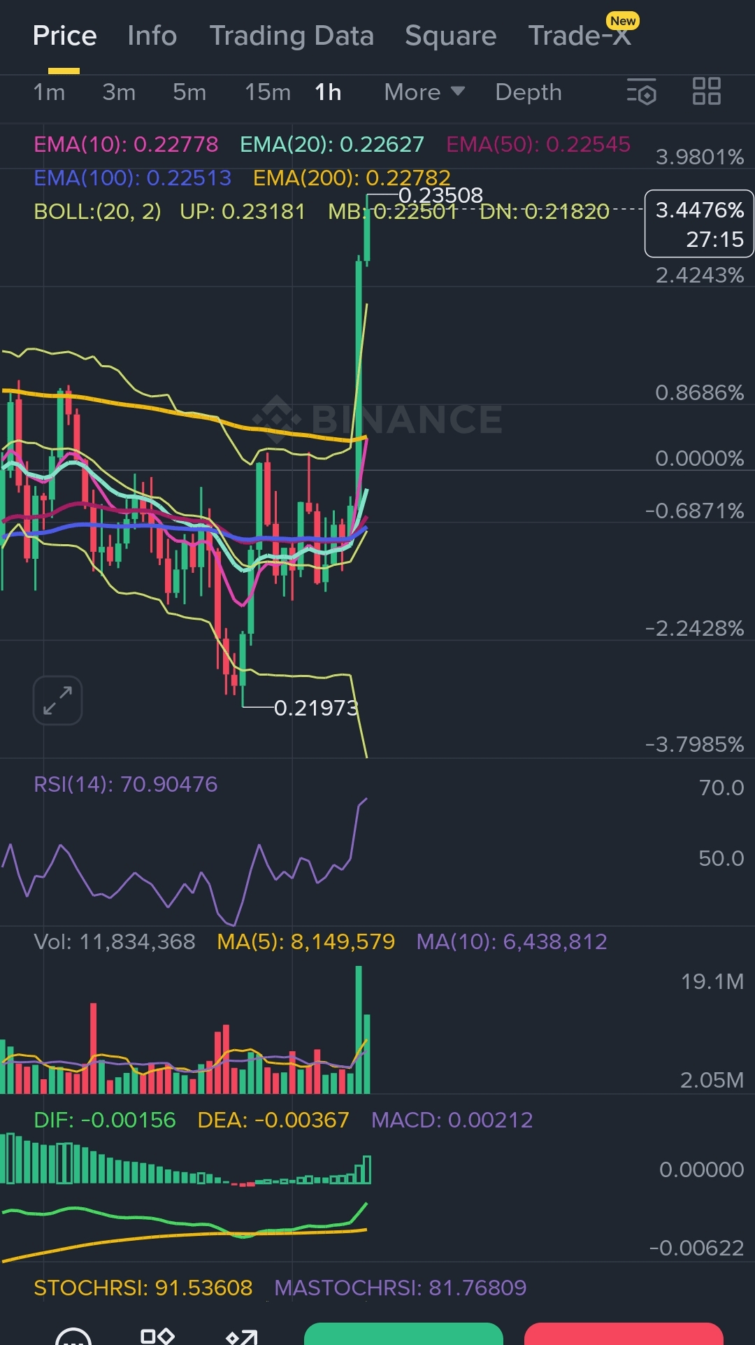 · EMA(10: 0.23341) > EMA(20: 0.23153) > EMA(50: 0.22862) 🐂