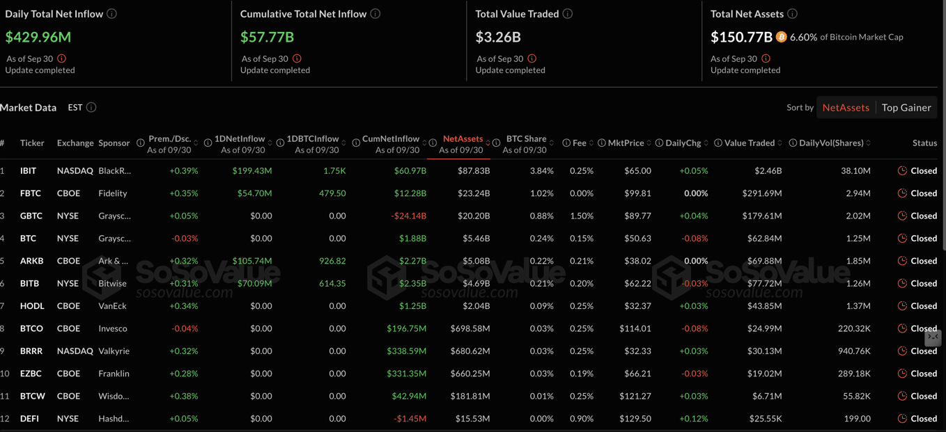 Estadísticas de ETF de Bitcoin | Fuente: SoSoValue