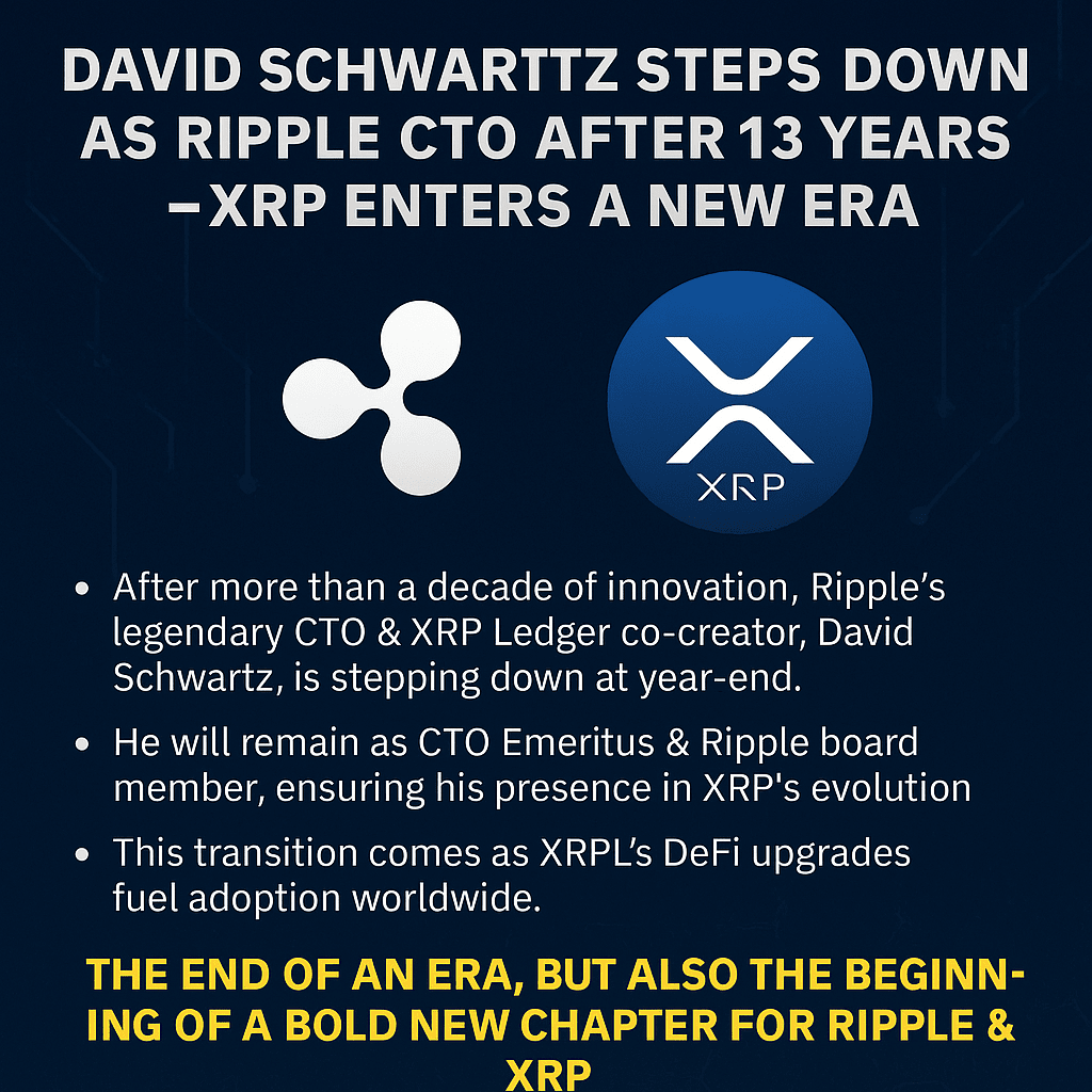 👉 Permanecerá como CTO Emérito & miembro de la junta de Ripple, asegurando su presencia en la evolución de XRP.