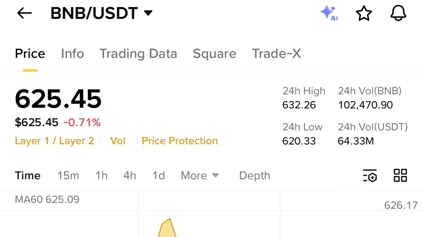 $BNB actualmente se está negociando alrededor del nivel de $625, mostrando una ligera debilidad a corto plazo con una leve caída de menos del 1%, pero en general manteniendo una estructura estable dentro de un rango clave de consolidación. A pesar de la reciente volatilidad del mercado que afecta a las criptomonedas principales, BNB ha logrado mantenerse por encima de la importante zona de soporte de $620, que sigue actuando como una base sólida para la acción del precio. El reciente movimiento del precio sugiere que BNB se está negociando lateralmente entre aproximadamente $620 y $632, indicando un período de indecisión entre los comerciantes. Este tipo de consolidación a menudo ocurre después de un movimiento previo y puede señalar acumulación antes de que comience la próxima tendencia. Los indicadores técnicos en los marcos de tiempo más bajos muestran que la tendencia de la media móvil sigue siendo ligeramente ascendente, insinuando que los compradores todavía tienen cierto control, aunque el impulso es actualmente débil. Los niveles de volumen también parecen moderados, sugiriendo que ni los toros ni los osos están dominando el mercado en este momento. Este equilibrio entre la presión de compra y venta es una señal clásica de que el mercado se está preparando para una posible ruptura, pero aún se necesita confirmación antes de que se establezca una dirección clara.