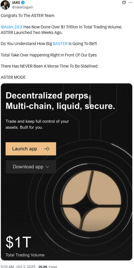 Desde su lanzamiento, ASTER ya ha superado los $1 billón en volumen de comercio acumulado, un logro que los partidarios de la comunidad aclamaron como prueba de su potencial a largo plazo.