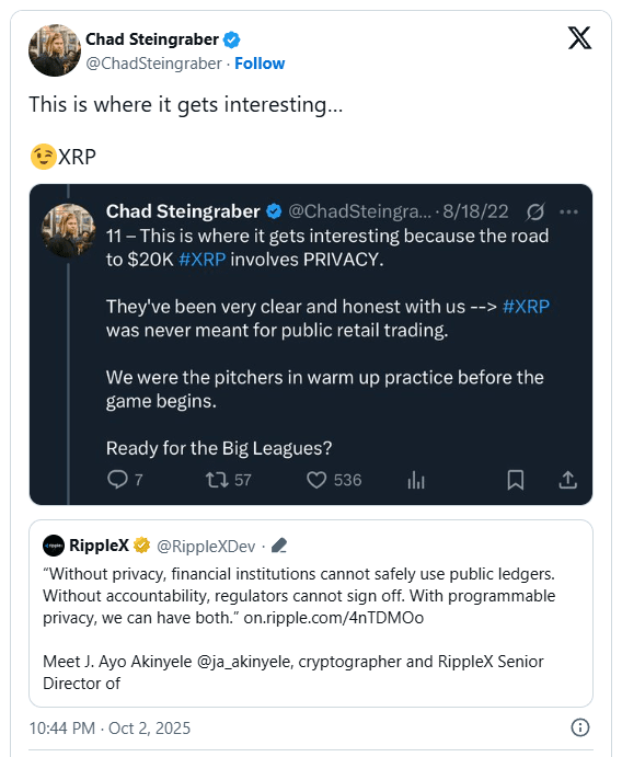$XRP Ripple ha puesto la privacidad y la escalabilidad en el centro de su nueva estrategia, y el movimiento reciente ha desencadenado teorías audaces sobre el precio del XRP.