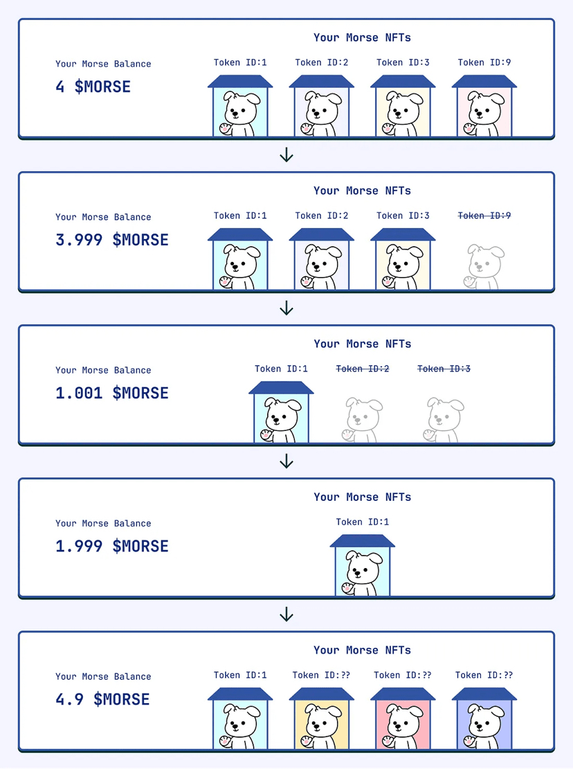 Uno de los aspectos más destacados de esta investigación es el mecanismo de balance token-NFT. Los saldos de $MORSE evolucionan dinámicamente según las interacciones con los NFT, demostrando cómo las mecánicas lúdicas también pueden mostrar el flujo de tokens y modelos de quema en un ecosistema en vivo. Esto proporciona valiosos conocimientos sobre cómo los tokens gamificados pueden funcionar en entornos DeFi reales.