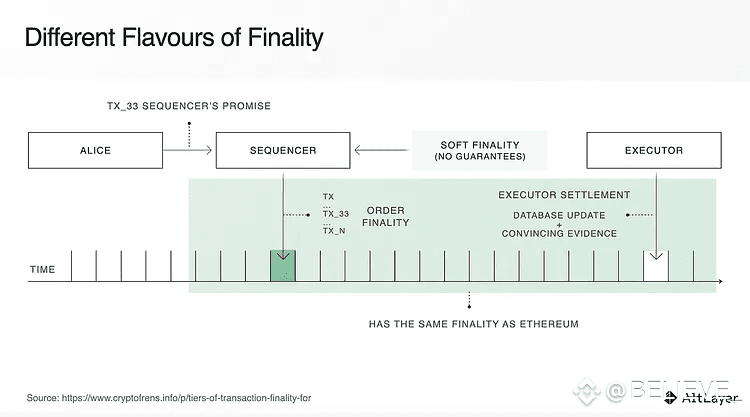 ➡️ Soft finality – provided by sequencers, fast but without economic guarantees