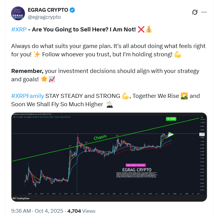 Este sentimiento resuena en toda la comunidad XRP, donde la paciencia históricamente ha sido recompensada tras períodos de consolidación prolongados.