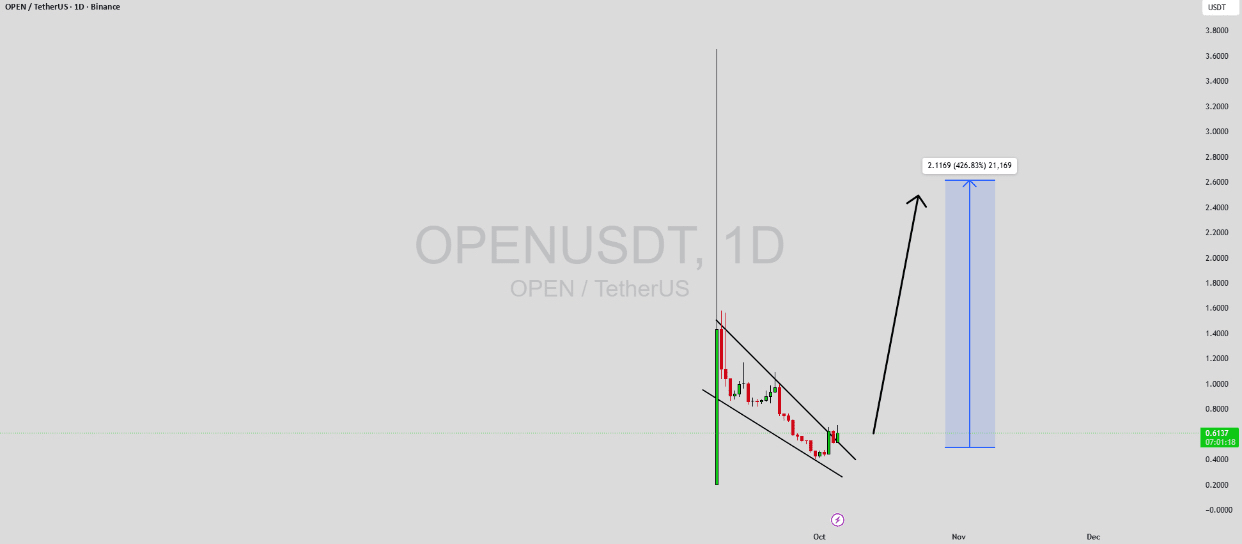 Históricamente, las altcoins que rompen cuñas bajistas bajo fuerte acumulación han desencadenado carreras parabólicas. Con OPENUSDT ahora alineándose perfectamente con este patrón, podría fácilmente convertirse en uno de los activos de mejor rendimiento en las próximas semanas.