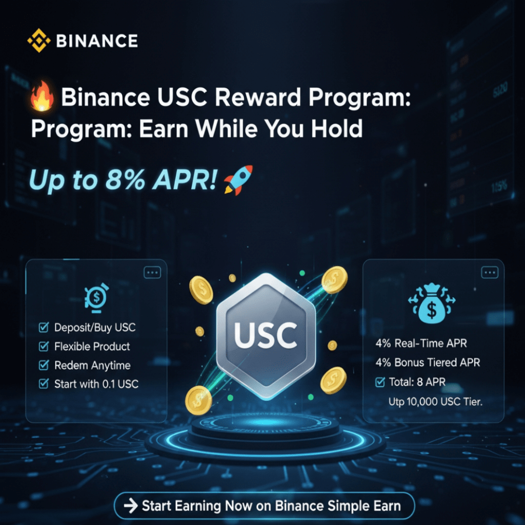 Binance ha lanzado un nuevo Programa de Recompensas USDC a través de Productos Flexibles Simple Earn, dándote hasta un 8% de APR — y sí, puedes comenzar con tan solo 0.1 USDC.