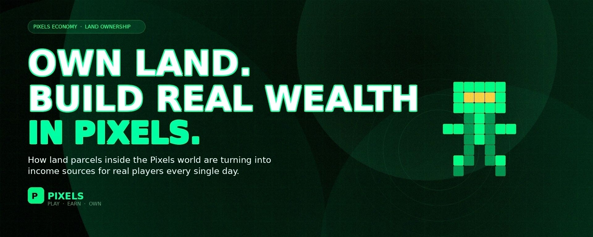 Land owners in Pixels can set up resource buildings, grow rare crops,