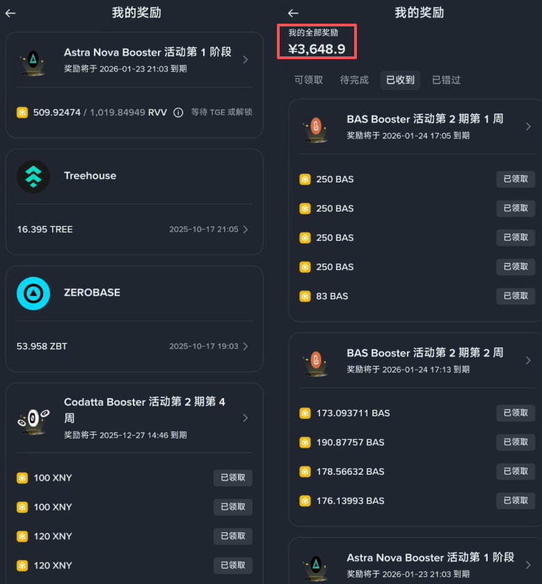 锁定期:通过Booster活动获得的代币通常有锁定期(一般为2周),在锁定期结束前无法领取或交易。