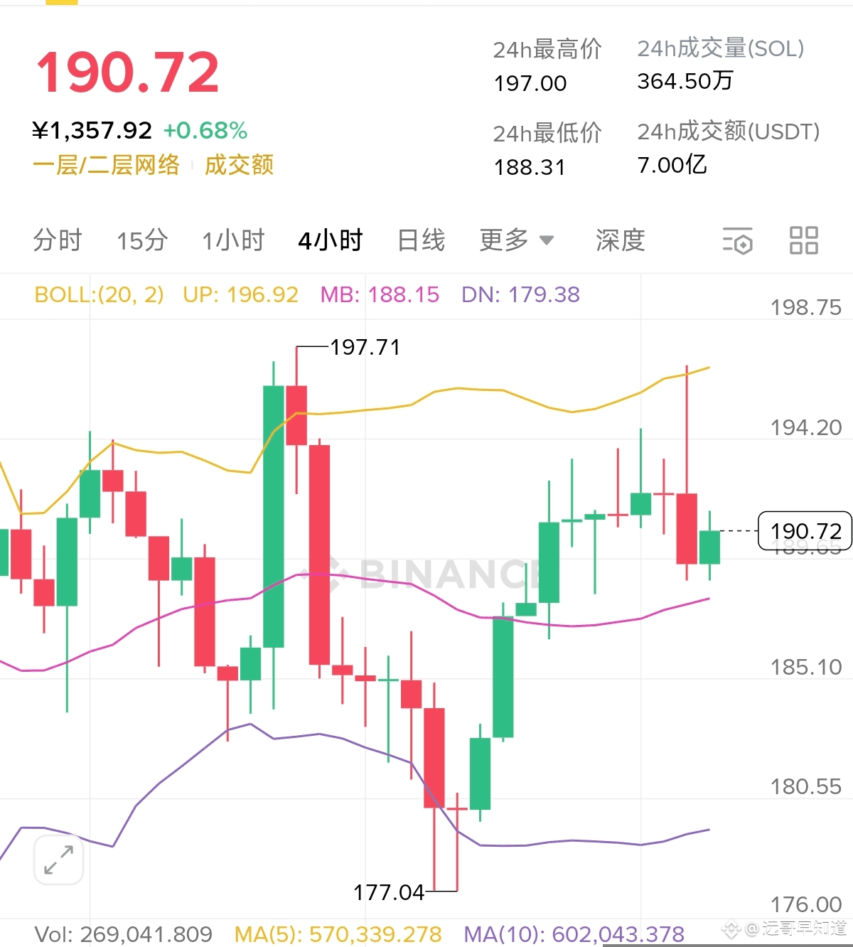 此刻是凌晨两点,SOL的K线仍在190关口附近震荡,盘面的每一次跳动都藏着多空力量的激烈博弈。结合最新链上数据与技术信号,今晚的市场细节值得细品。