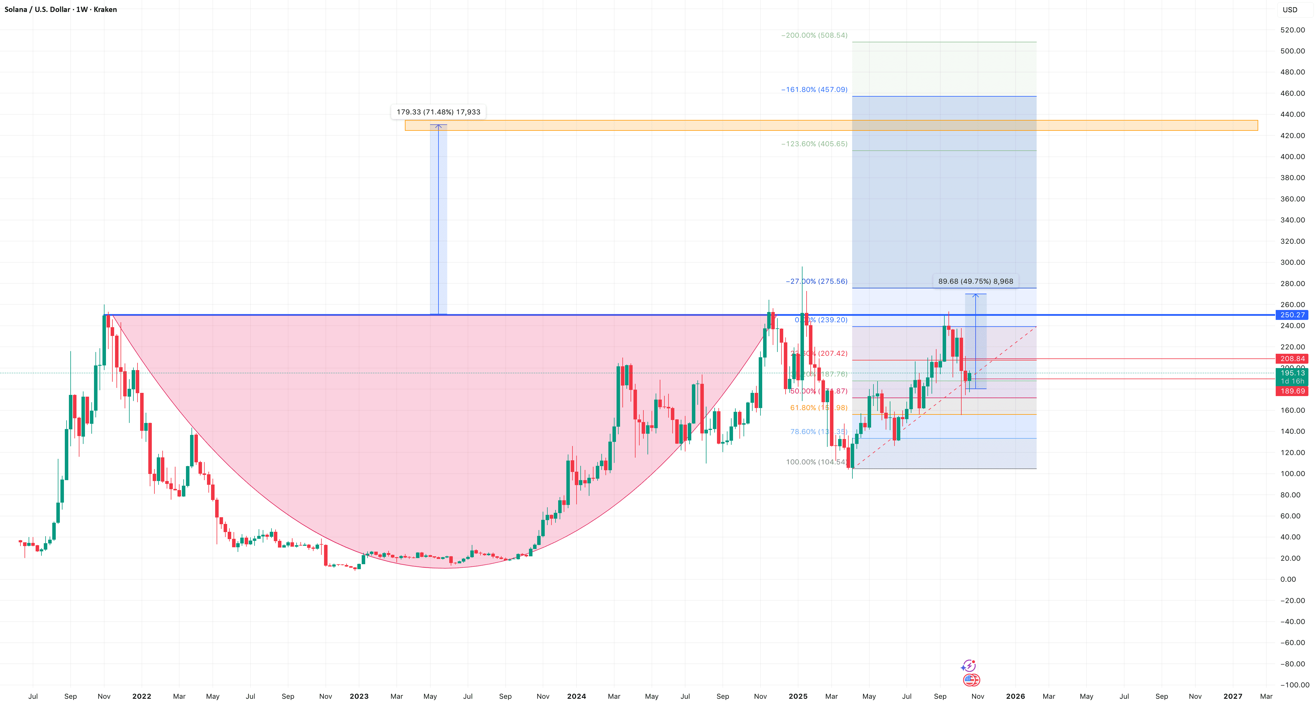Para el estilo de la taza y el asa, esta es la situación alcista para mí en Solana en esta ronda alcista