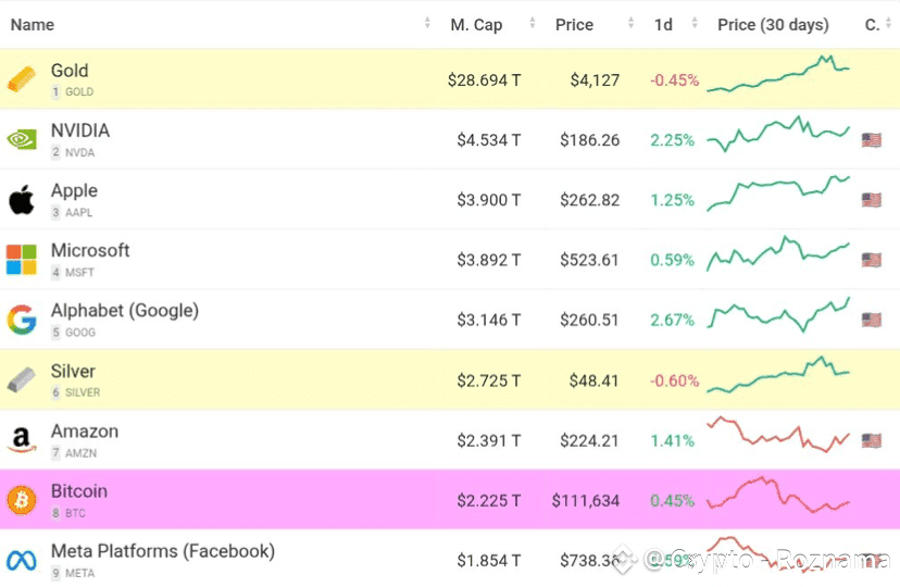 ¡Hola Binancianos! 👋 He estado sumergiéndome en este resumen del mercado, y el caso alcista para Bitcoin en 2025 es más convincente que nunca. Nuestro gráfico actual muestra que Bitcoin ($111,634) está detrás de activos como el Oro, NVIDIA y Apple en términos de Capitalización de Mercado, sentado en $2.225 Trillion.