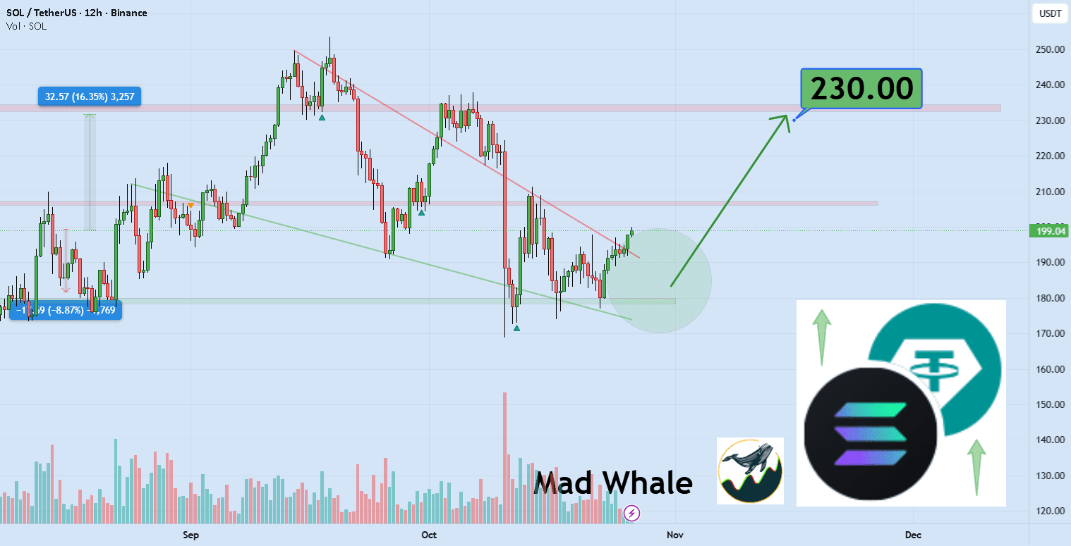 SOLUSDT está probando un nivel de soporte diario clave; mantener esta área podría desencadenar un aumento del 16%, con un objetivo de $230. 📈🛡️