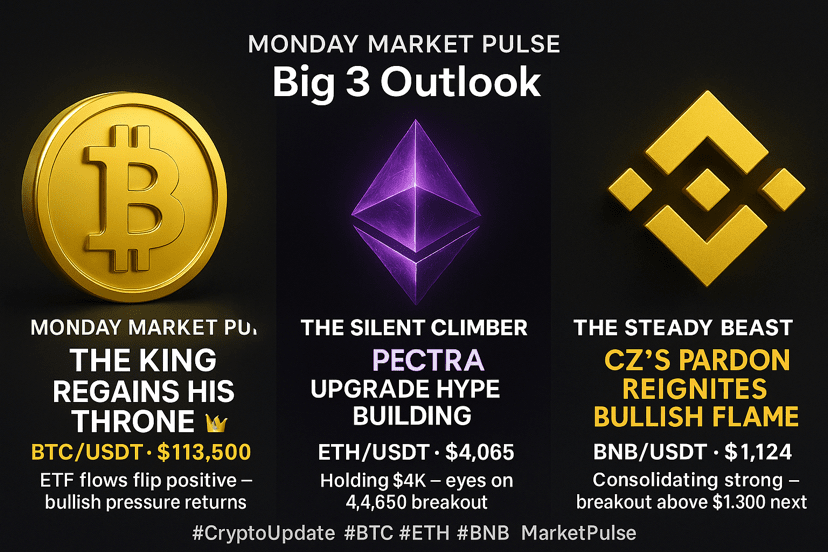 El momento está cambiando — BTC podría liderar la próxima etapa, pero la fuerza silenciosa de ETH y la base estable de BNB cuentan una historia de equilibrio.