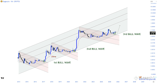 Miren esto: Ahora mismo, Doge está en modo "chill" debajo de los $0.20, consolidando. Pero no se dejen engañar por este baile tranquilo, porque los analistas, la gente seria que mira los gráficos con lupa 🔍, están diciendo que lo que viene es la tercera ola alcista, y va a ser ÉPICA. Esto no es solo un tal vez, es un patrón que se ha repetido dos veces antes, y parece que la tercera va en camino.