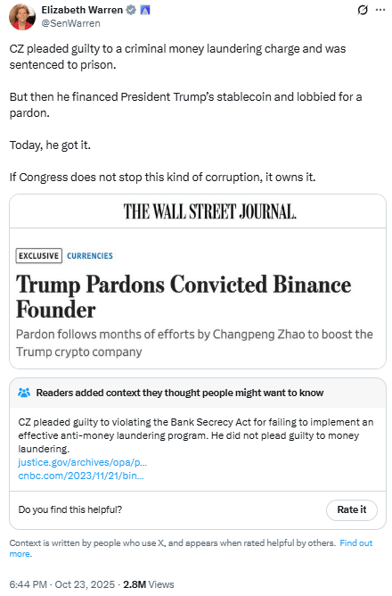 #Binance , #CZ , #ElizabethWarren , #TRUMP , #USPolitics