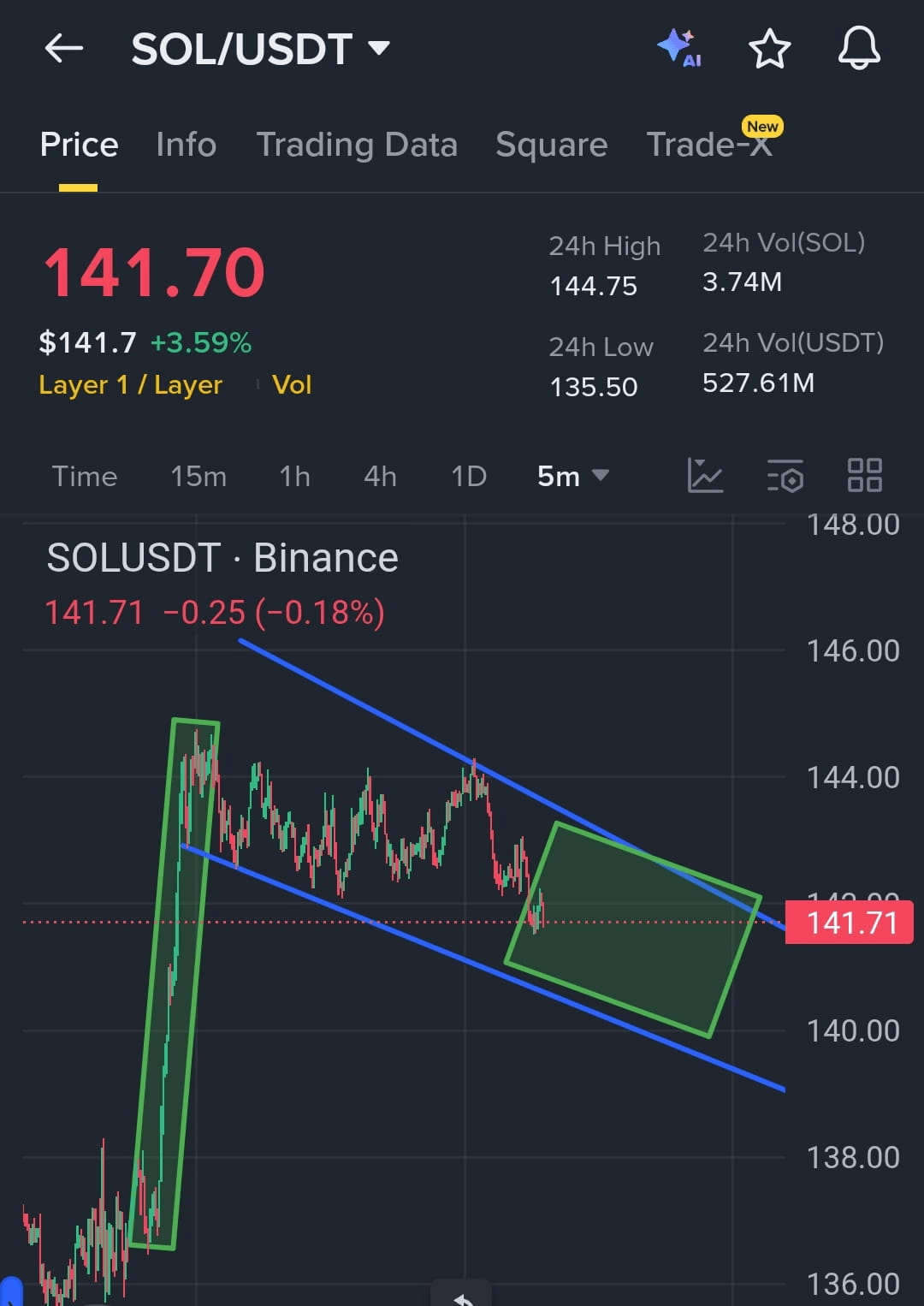$SOL está formando un patrón limpio en el gráfico de 5 minutos y parece listo para un rebote! 📈