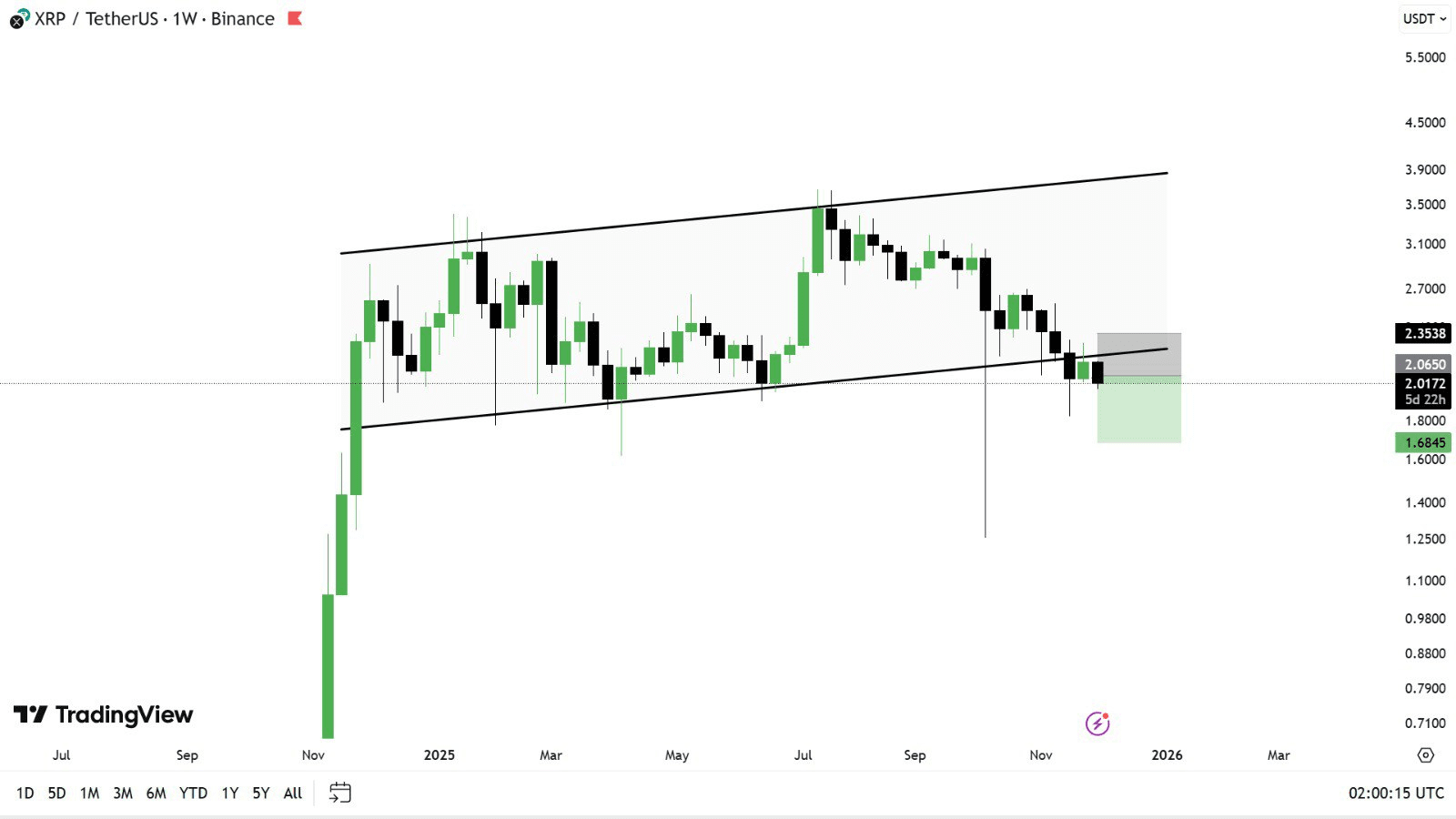 XRP tuvo una gran caída ✅ desde el canal ascendente en el gráfico macro, en general esto parece bajista🐻.