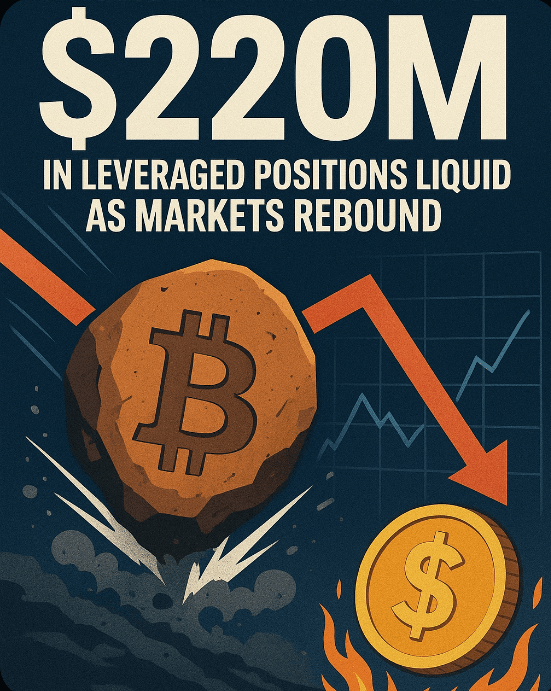 El mercado de criptomonedas ha mostrado una vez más su lado implacable. Solo en las últimas 24 horas, más de $220 millones en posiciones de futuros apalancadas fueron eliminadas mientras Bitcoin, Ethereum y varios altcoins realizaron movimientos de precio repentinos y fuertes. La mayor parte del daño recayó en los comerciantes que apostaron en contra del mercado, exponiendo los riesgos del alto apalancamiento y la imprevisibilidad del impulso criptográfico a corto plazo.