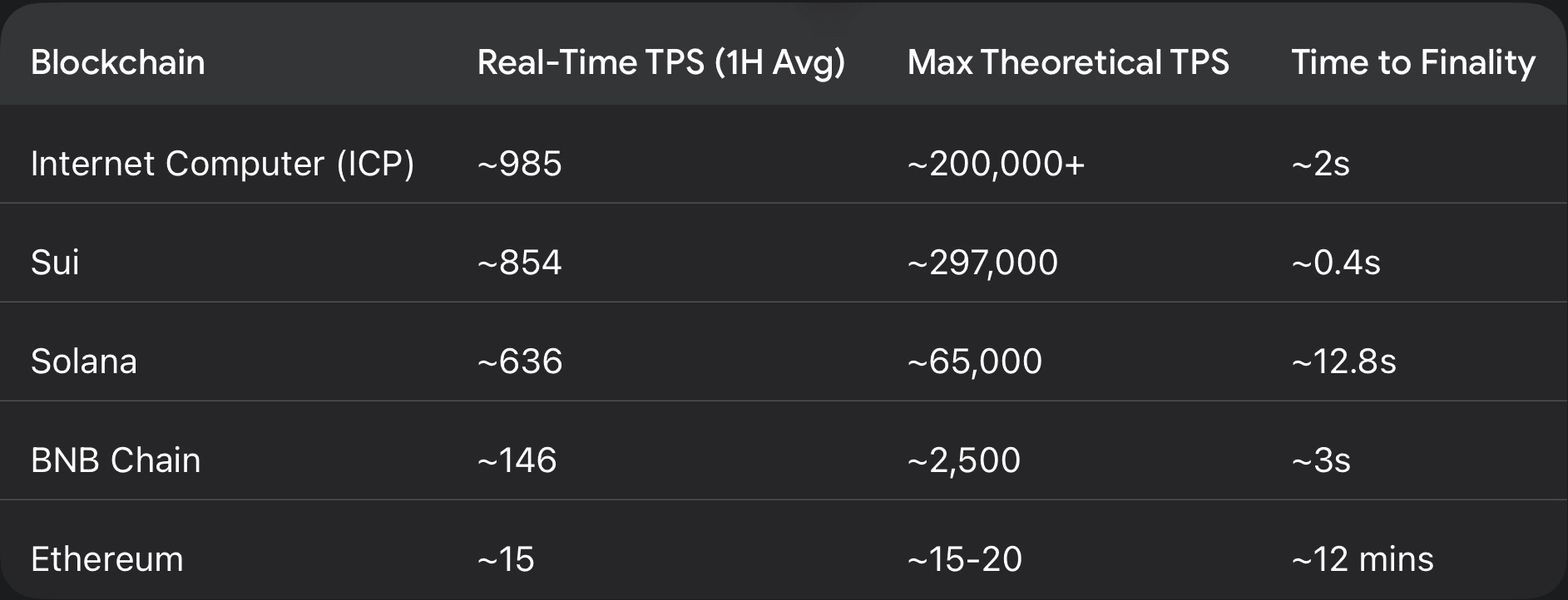 El análisis comparativo con cadenas competidoras revela la sólida posición de Sui en el grupo de "alto rendimiento".