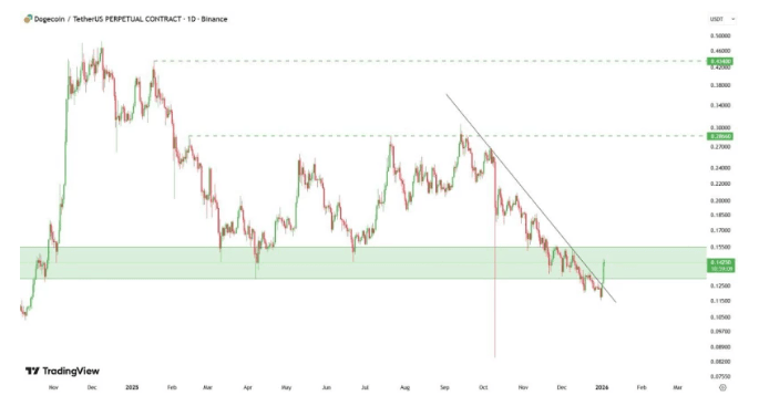 👉 ¿El riesgo? Un cierre diario por debajo de $0.13 señalaría un colapso estructural para DOGE, potencialmente desencadenando un mayor impulso bajista y precios más bajos. Eso convierte este rango de negociación en un punto de decisión crítico, con los traders observando de cerca para ver si el soporte puede mantenerse. La acción del precio muestra que la volatilidad sigue siendo alta mientras el mercado debate si esta reciente fuerza tiene continuidad.