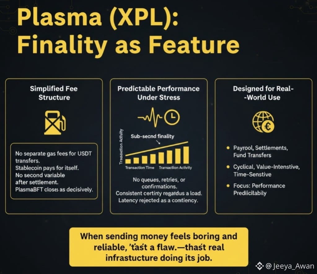 But what impressed me most was Plasma's performance under pressure. Increased transaction activity, accumulating dependencies, and more frequent coordination work occur, yet time remains completely unaffected. There are no queues, no retries, and no reassuring provisional confirmations. Plasma's BFT algorithm is also unaffected. Every transaction is completed with the same certainty and finality.
