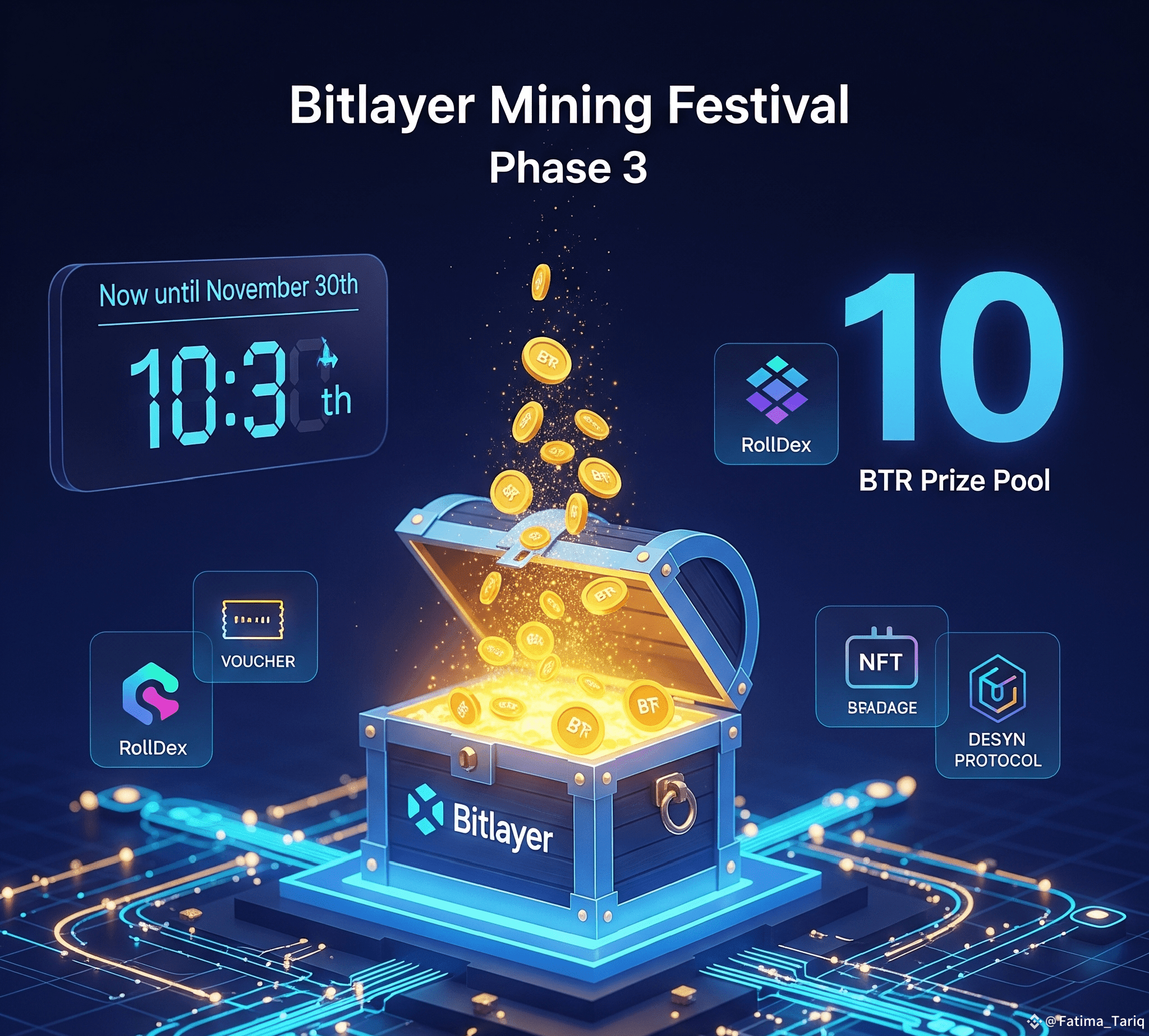 Get ready to dive into the heart of the Bitcoin Layer 2 revolution, because the highly anticipated BTR Mining Festival is back for its third phase, and it's bigger than ever! In a massive collaboration with leading ecosystem projects like RollDex and DeSyn Protocol, Bitlayer is offering a staggering prize pool of 10 million BTR tokens. This isn't just an event; it's a golden opportunity for anyone looking to get involved with one of the most promising projects in the BTCFi space.From now until November 30, you have the chance to earn your share of these valuable BTR tokens. Participation is designed to be straightforward and rewarding. All you need to do is log in to the official Bitlayer website or through partner portals like OKX Web3 and complete a series of simple tasks.How to Participate and Win:-The festival is built around a "treasure chest" model that makes earning BTR both engaging and fun. Here’s how you can join the action:Complete Tasks: The festival features a mix of social tasks (like following social media accounts) and on-chain interactions. These on-chain tasks are your chance to experience the Bitlayer ecosystem firsthand.Mint SBTs: A key part of the festival is minting Soulbound Tokens (SBTs), which serve as a record of your participation. These are unique, non-transferable tokens that represent your journey within the Bitlayer community.Interact with DApps: Engage with partner projects like RollDex and DeSyn Protocol by performing simple actions, such as making a deposit or trading.Unlock Treasure Chests: Each completed task gives you a chance to unlock a treasure chest, which contains a random drop of BTR tokens.The Tech Behind the Rewards: Security You Can Trust.For the technically-minded and experienced crypto users, the event's mechanics are a testament to Bitlayer's innovative architecture. The reward distribution is powered by a robust “on-chain + off-chain” dual verification mechanism. This system uses smart contracts to track user contributions in real-time, ensuring that every reward is distributed transparently and fairly. This is a far cry from traditional centralized campaigns and a perfect example of true Web3 principles in action.Furthermore, Bitlayer's core technology, the “Bitcoin Security Equivalent” Rollup architecture, ensures that all transactions have finality consistent with the Bitcoin main chain. This means you can participate in the festival and interact with DApps with the peace of mind that your assets are protected by Bitcoin's unparalleled security.More Than Just BTR: A Multitude of Ecosystem Rewards.The third phase of the Mining Festival is a collaborative effort, and the rewards extend far beyond just BTR tokens. Partner projects are also offering a wealth of additional benefits to participants, including valuable NFTs, points, and exclusive access. For example, you can earn cross-chain lending limit increase vouchers from Jasper Vault or liquidity mining acceleration cards from VolaArk. These unique rewards not only offer immediate value but also provide a head start in their respective ecosystems.This festival is more than just a giveaway; it’s an invitation to explore a rapidly growing ecosystem that is building the future of Bitcoin DeFi. With a massive prize pool, innovative reward mechanics, and the security of Bitcoin at its core, the Bitlayer Mining Festival Phase 3 is a must-join event for anyone ready to be an early player in the next big wave of crypto innovation.Don’t miss out! The clock is ticking until November 30. Get involved, start exploring the ecosystem, and claim your share of the 10 million BTR tokens today!