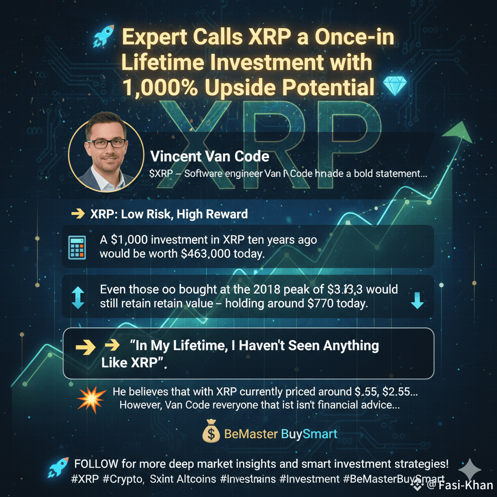 $XRP â Software engineer Vincent Van Code has made a bold statement, claiming heâs never seen an investment like XRP in his lifetime â one that offers low risk yet massive upside potential.