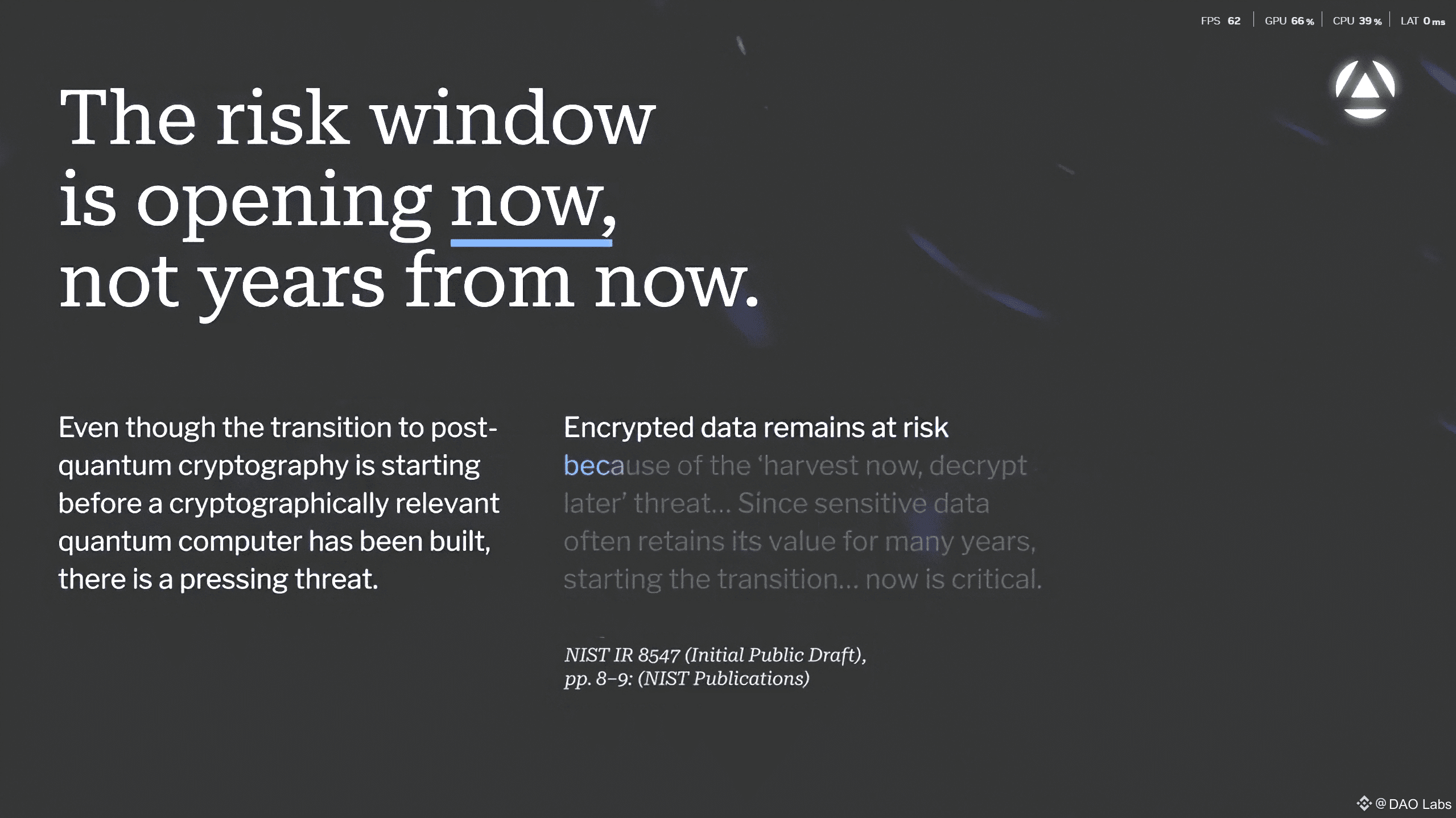 In the circles of the #AutonomysNetwork and the #SocialMining , the debate on the topic of #AI3 is growing around a single word more and more: post-quantum resilience. The NIST working report, IR 8547, is an important milestone in itself, the roadmap towards the transformation of traditional cryptography systems to quantum-safe algorithms. It is a call to action at a time when enemies are already putting stored encrypted data in the world awaiting the day they can decode it with quantum computing.