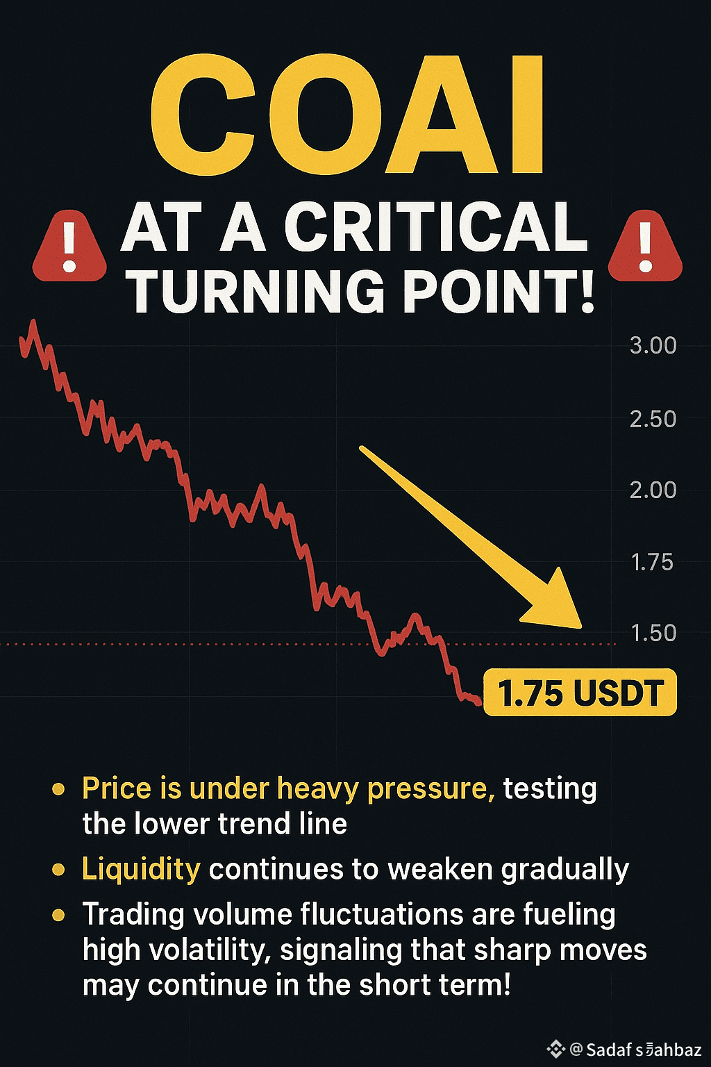 🔥 آنے والے دنوں میں 1.75 USDT کا لیول COAI کے مستقبل کا فیصلہ کرے گا — یہ لیول ٹوٹا تو کہانی بدل سکتی ہے، اور اگر تھم گیا… تو ایک بڑا ریورس موومنٹ دیکھنے کو مل سکتا ہے! 🚀