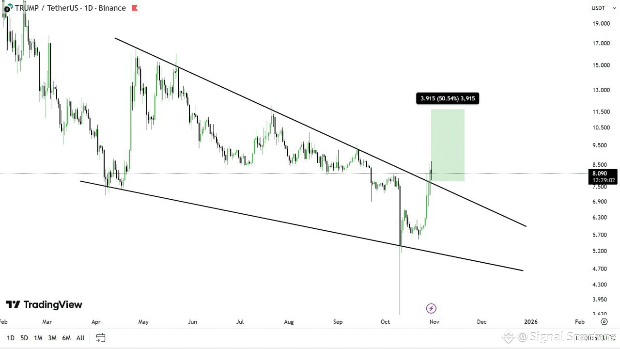 $TRUMP also had a successful breakout ✅ from the falling wedge pattern in the Daily timeframe.