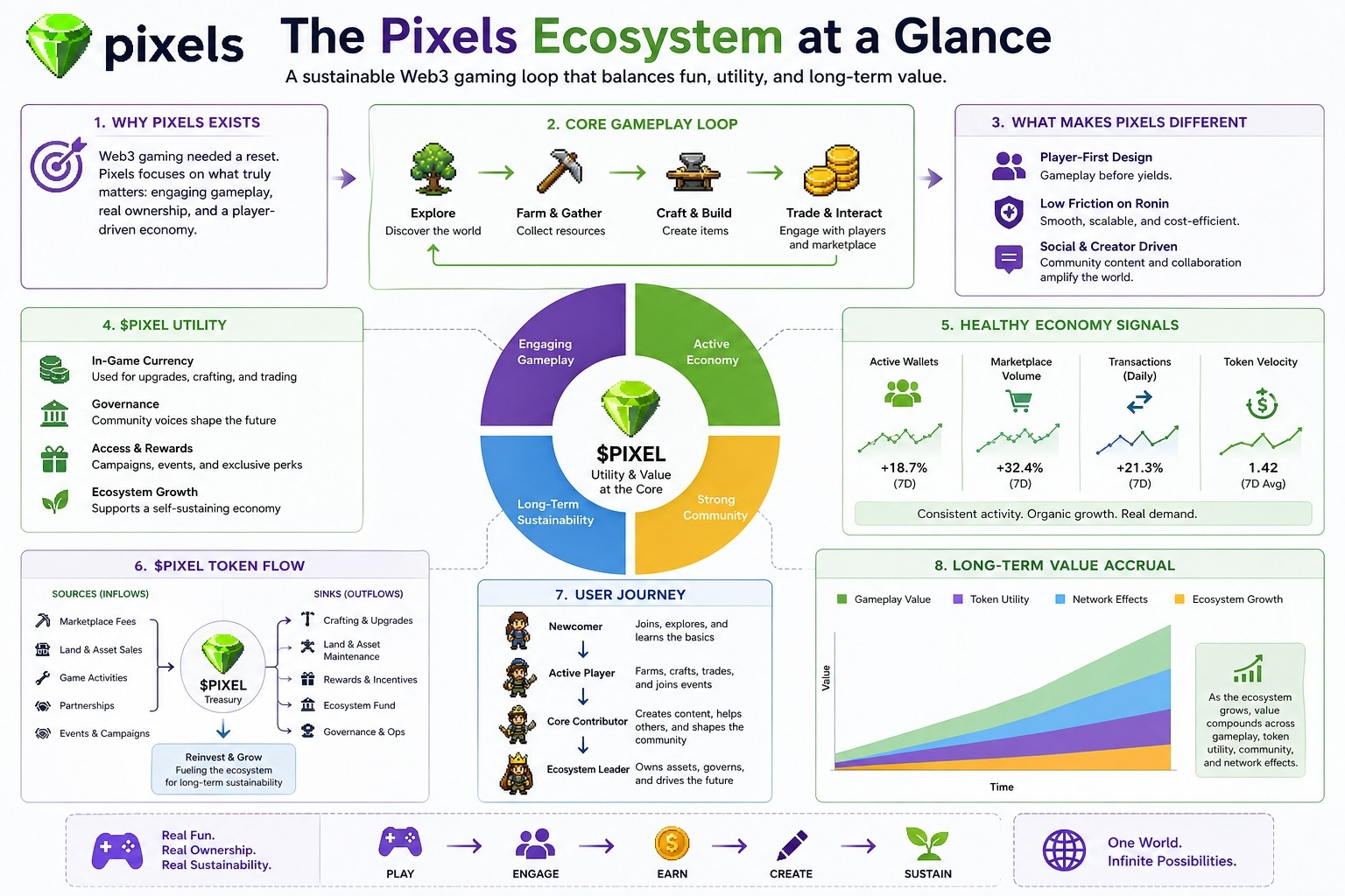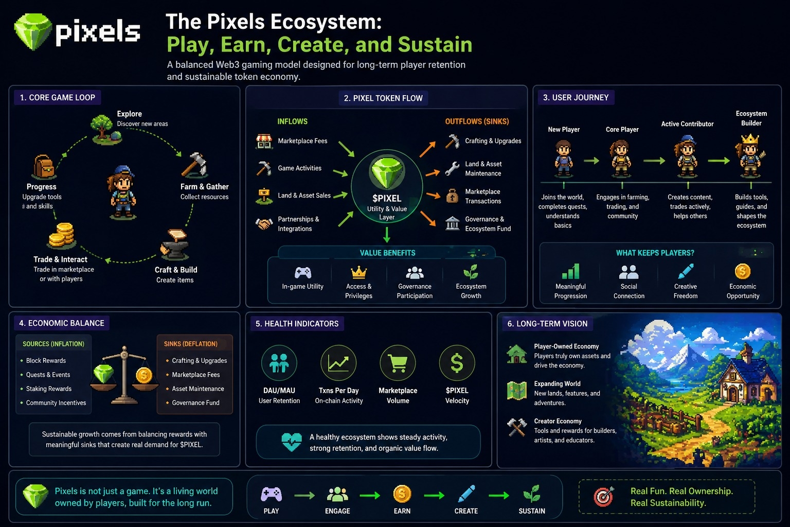 The PIXEL token itself reflects this balance. It’s not positioned as the sole reason to participate, but it still underpins the in-game economy. Its utility is tied to progression, upgrades, and participation in the broader ecosystem. What I pay attention to here is not just token distribution or emissions, but how often players are actually choosing to use it versus hold or sell it. If the in-game sinks are meaningful, you’ll see a different kind of price behavior—less driven by hype cycles and more by activity cycles.