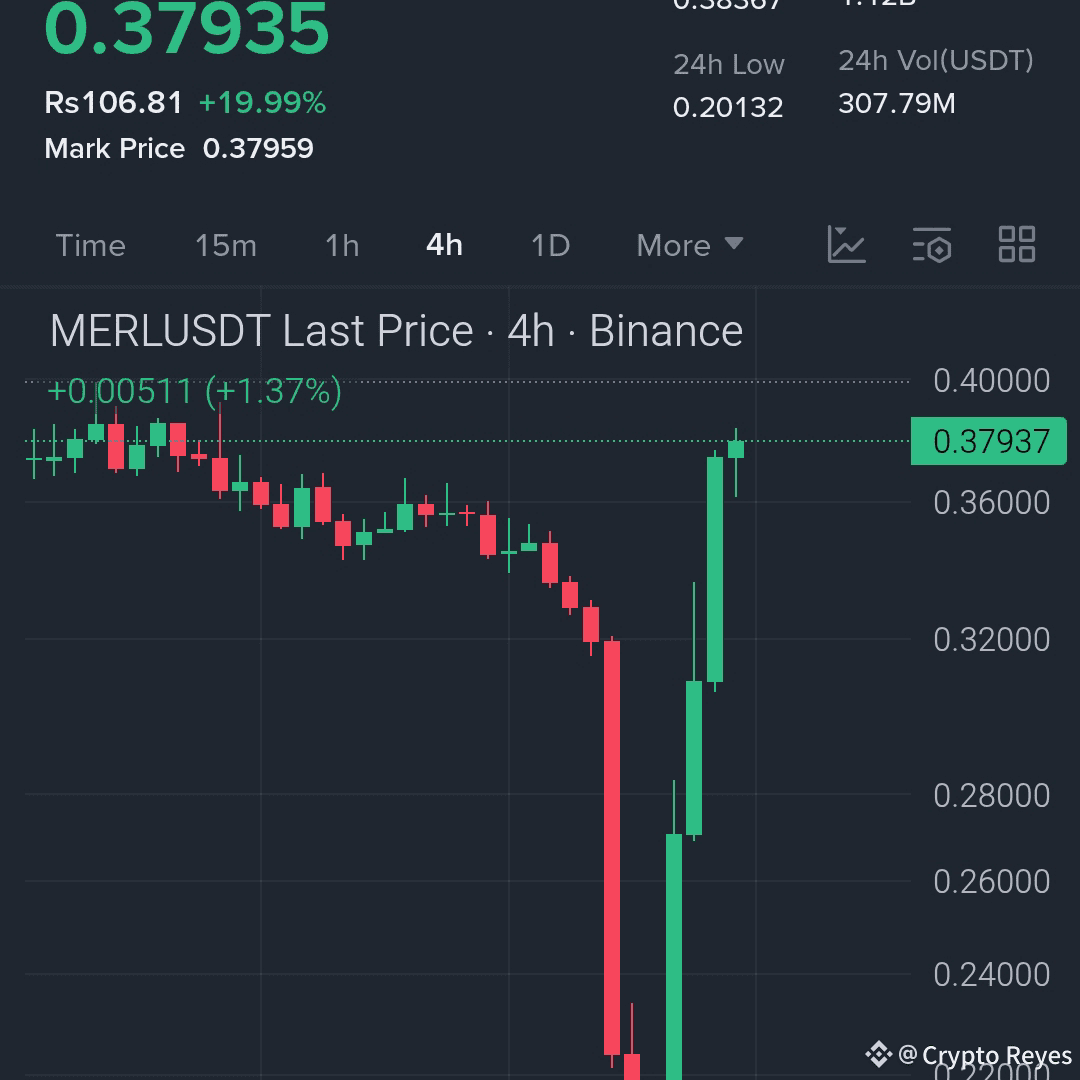 $MERL reminded the entire market what real strength looks like. After that heavy dip, the chart snapped back with a clean V-shape reversal, followed by nonstop green candles.