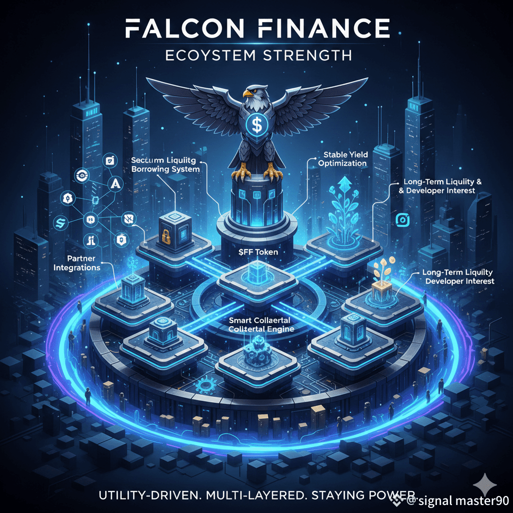Falcon Finance strength doesn’t lie in one feature — it lies in the ecosystem it is building. Smart Collateral Engine, modular liquidity rails, secure borrowing system, stable yield optimization, partner integrations — each layer adds real utility to the $FF token.