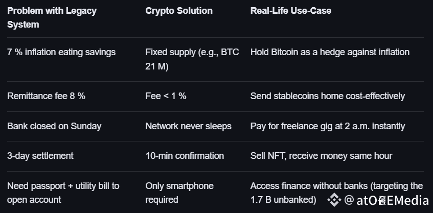 Example: Sending $10 of Bitcoin to a friend in Brazil while you sit in Nigeria no bank, no holiday delays, no currency exchange hassle.