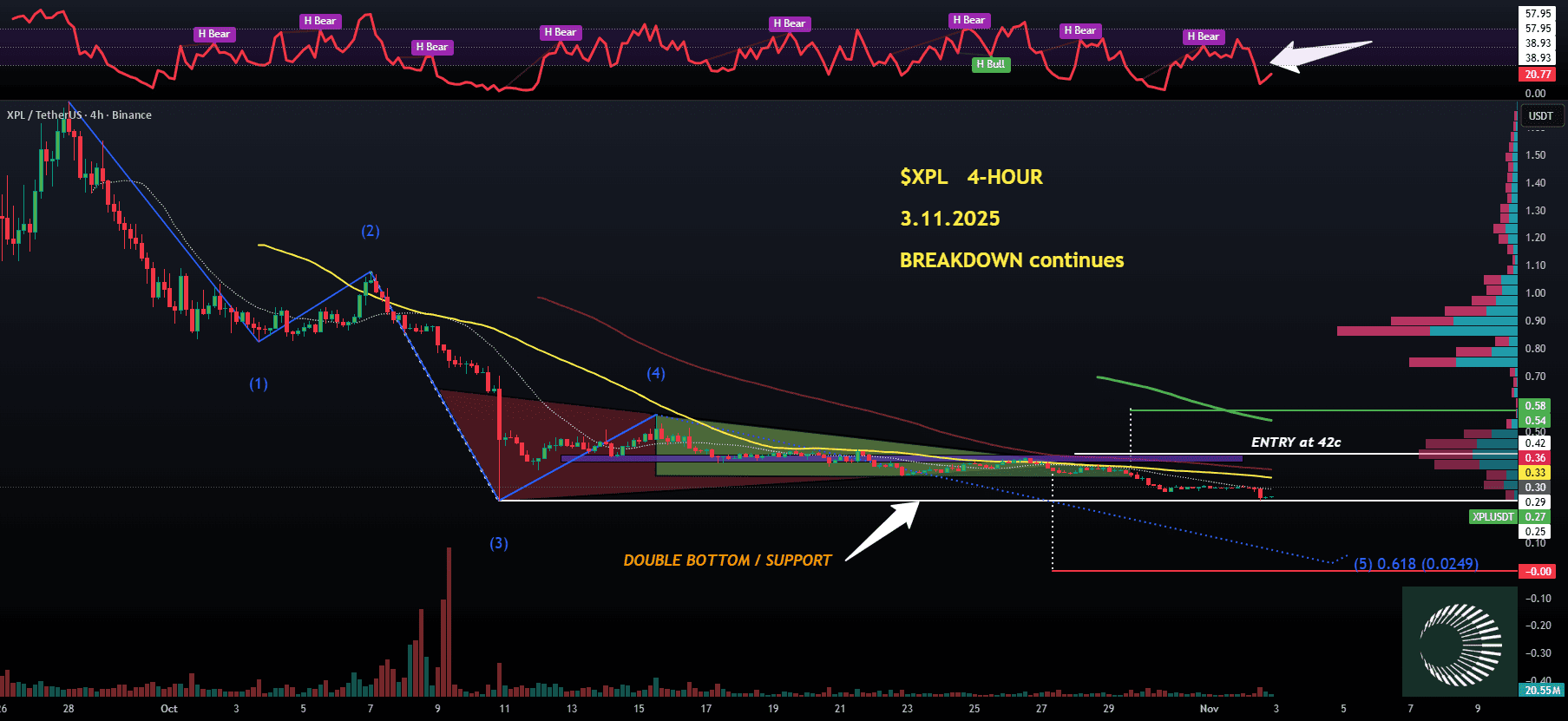 Le fond est double (dans le fond de l'effondrement exactement 10/10) maintenant, l'indice de force relative est très survendu à 19.