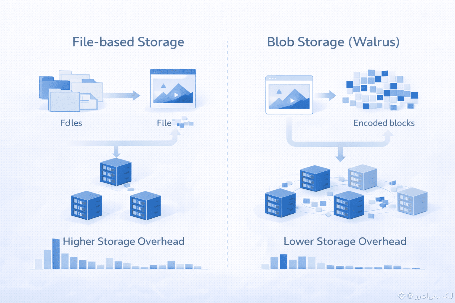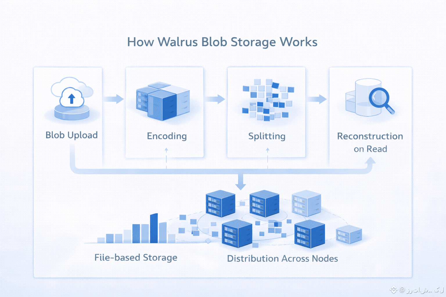 This is why the idea of blob storage is not just a technical detail in Walrus. It is the center of the whole design. By admitting that most modern decentralized applications deal with large, simple chunks of data, and by building a system that is honest about that, Walrus avoids many of the problems that come from trying to imitate traditional storage in a world where the assumptions are completely different.