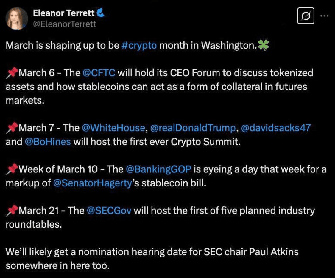 - Maret 7: Gedung Putih akan mengadakan pertemuan crypto.