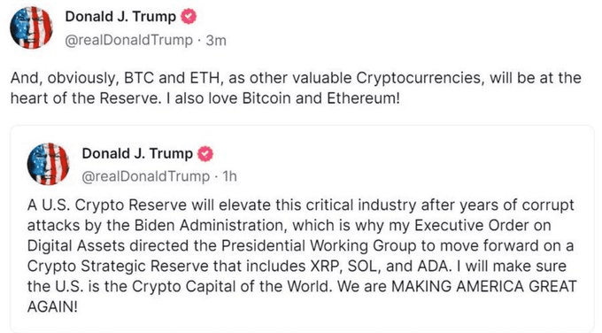 Trump telah mengonfirmasi bahwa Cadangan Strategis Crypto akan mencakup lebih dari sekadar SOL, XRP, ADA, ETH, dan BTC.