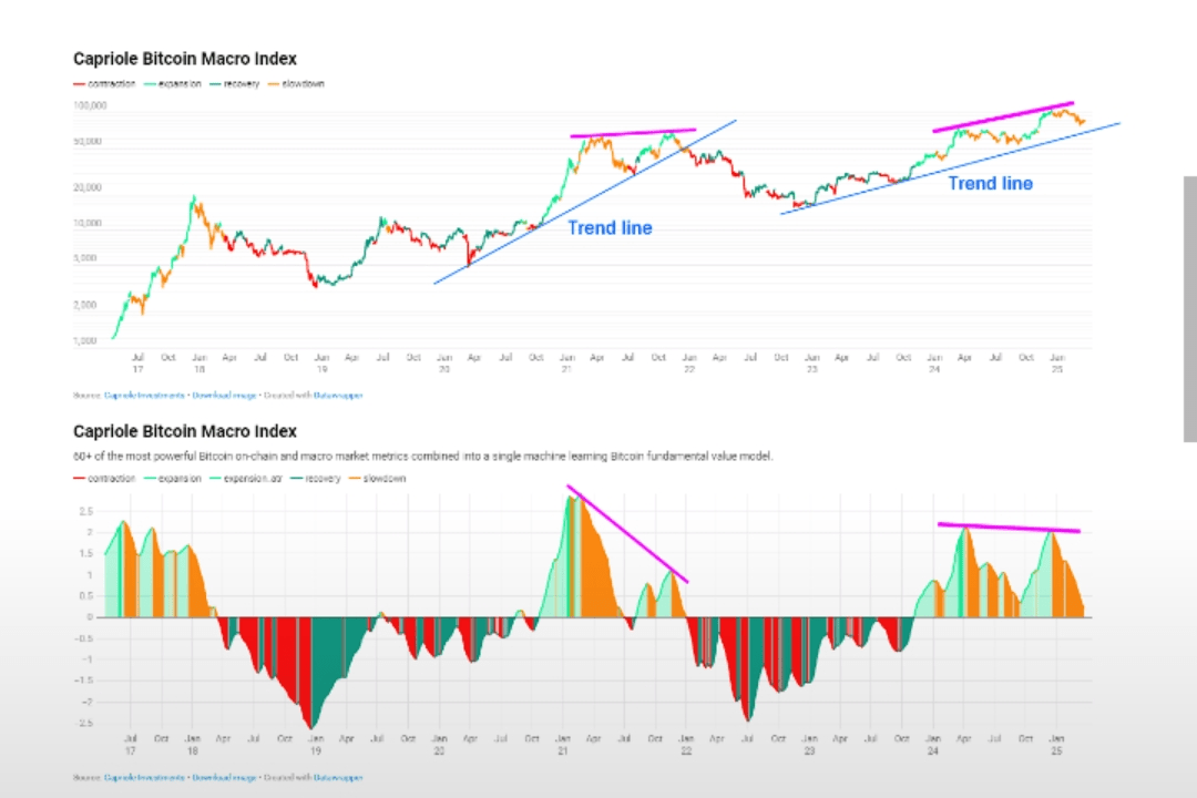 'Bitcoin. Dalam diskusi media sosial pada 27 Maret, komentator Bitcoin menandai sinyal yang mengkhawatirkan dari Indeks Makro Bitcoin Capriole.