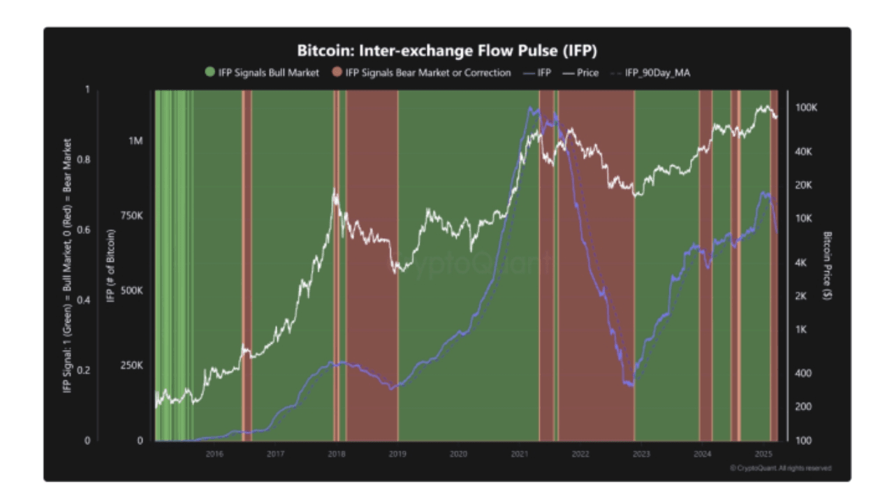 Perdagangkan 275+ cryptocurrency dengan Aplikasi Kraken. Nikmati keamanan kelas dunia, biaya rendah, dan dukungan pelanggan 24/7. "Tidak bagus," reaksi Edwards saat membagikan kembali cetakan Indeks yang diunggah ke X oleh pengguna lain. Indeks Makro Bitcoin Capriole. Sumber: @A_Trade_Academy/X. Metrik harga BTC berjuang untuk pulih. Berbagai sumber analitik telah menyimpulkan bahwa Bitcoin mengalami turbulensi makro tahun ini. Terkait: Pasar prediksi harga Bitcoin bertaruh BTC tidak akan lebih tinggi dari $138K pada tahun 2025. Dalam salah satu pos blog "Quicktake" minggu ini, platform analitik onchain CryptoQuant merujuk pada empat metrik onchain yang saat ini berada dalam keadaan fluks. "Semua metrik ini menunjukkan bahwa Bitcoin mengalami turbulensi yang signifikan dalam jangka pendek hingga menengah," komentar kontributor Burak Kesmeci. Grafik IFP Bitcoin (tangkapan layar). Sumber: CryptoQuant. Daftar ini mencakup Market Value to Realized Value (MVRV) dan Net Unspent Profit/Loss (NUPL), serta metrik yang disebut Inter-Exchange Flow Pulse (IFP), yang beralih bearish pada bulan Februari. Untuk ini berubah, Kesmeci menyimpulkan, IFP harus kembali di atas rata-rata pergerakan sederhana (SMA) 90 hari.#BSCTrendingCoins