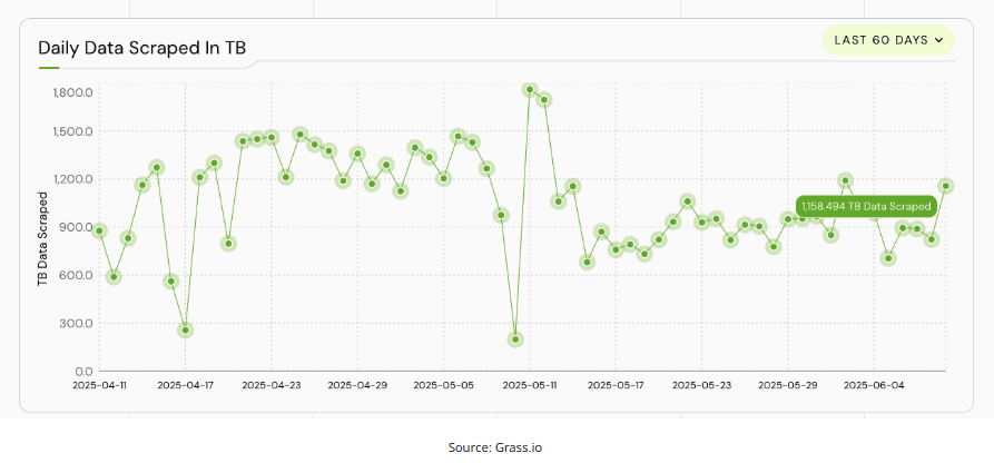 Rumput telah menunjukkan ekspansi jaringan yang cepat sebagai proyek blockchain yang fokus pada penciptaan jaringan terdesentralisasi untuk memonetisasi bandwidth internet yang tidak terpakai, terutama untuk tugas terkait AI.