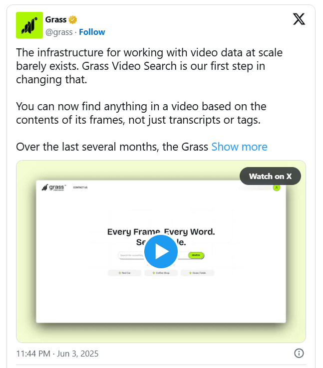 Selama beberapa bulan terakhir, Yayasan Rumput telah diam-diam mengumpulkan salah satu dataset video terbesar dalam sejarah: lebih dari satu miliar video dari seluruh web publik, dibagi berdasarkan adegan dengan anotasi VLM dari keyframe.