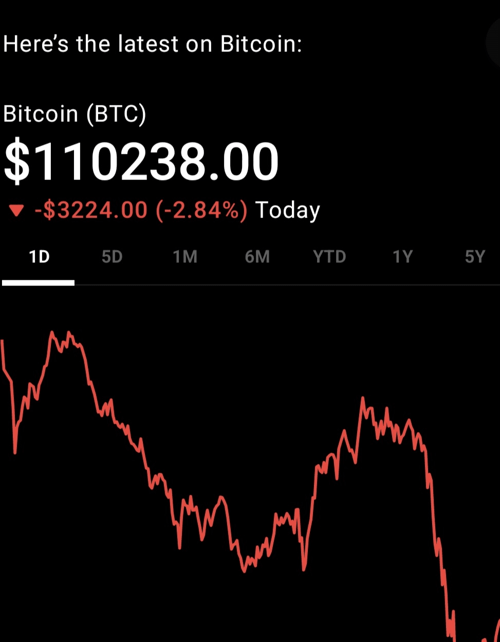 Harga Saat Ini: Sekitar $110.238, mencerminkan penurunan intraday sebesar 2,8%.