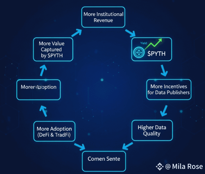 More Institutional Revenue, More Value Captured by PYTH, More Incentives for Data Publishers, Higher Data Quality, More Adoption (DeFi & TradFi).
