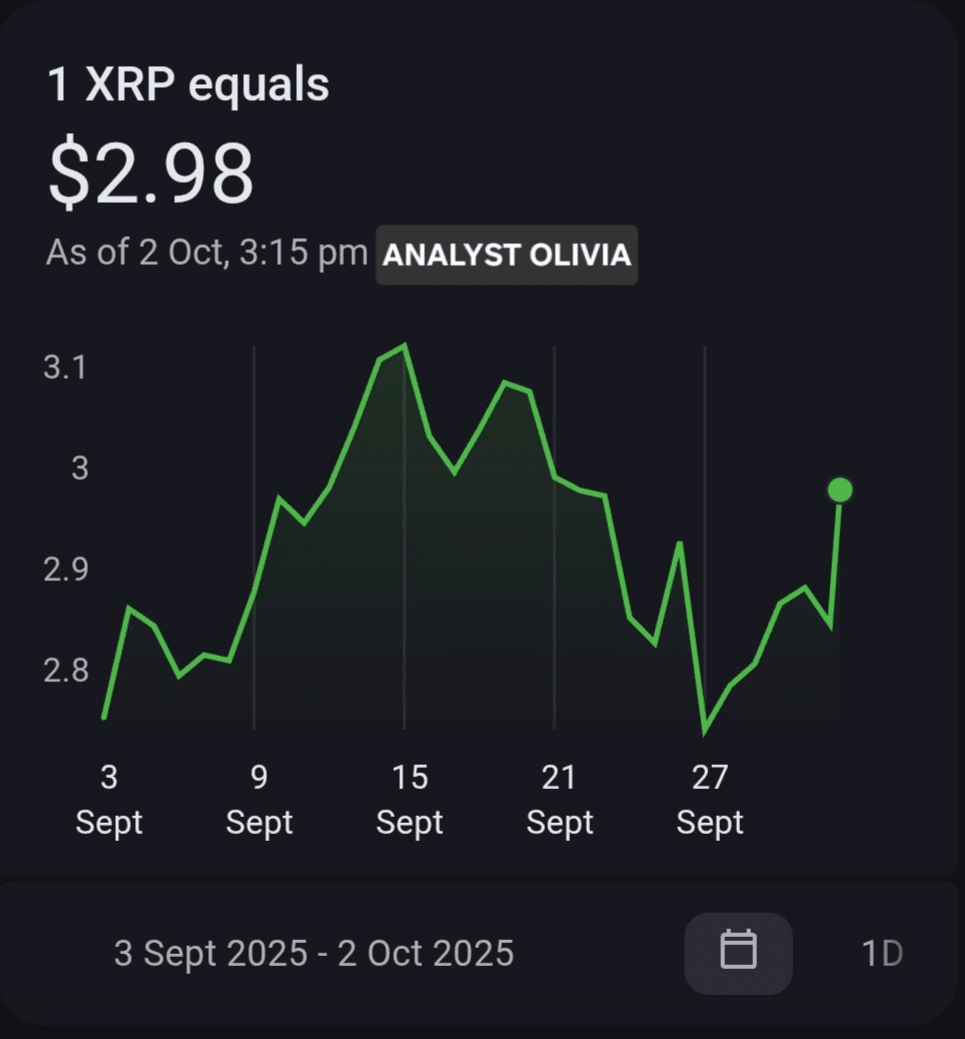 XRP saat ini menunjukkan tanda-tanda yang dapat mengarah pada breakout di atas tanda $3,00 pada bulan Oktober.